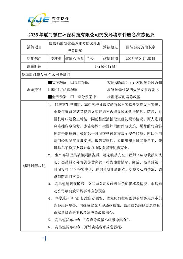 2025年廈門東江環保科技有限公司突發環境事件應急演練